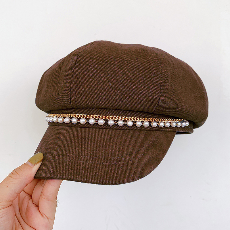 Pearl Octagonal Cap Korean Style All-matching Graceful Beret Classic Style Duck Tongue Newsboy Cap Tide