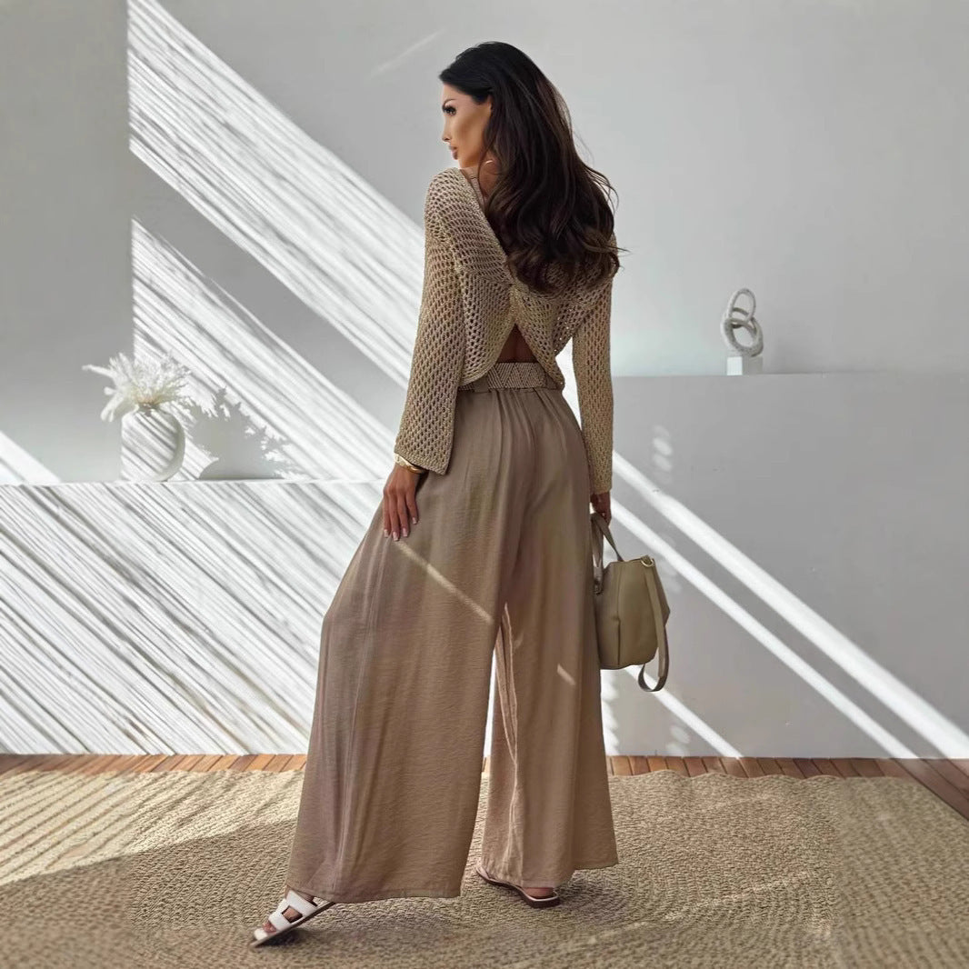 Pullover V-neck Hollow Out Back Cross Loose Sweater