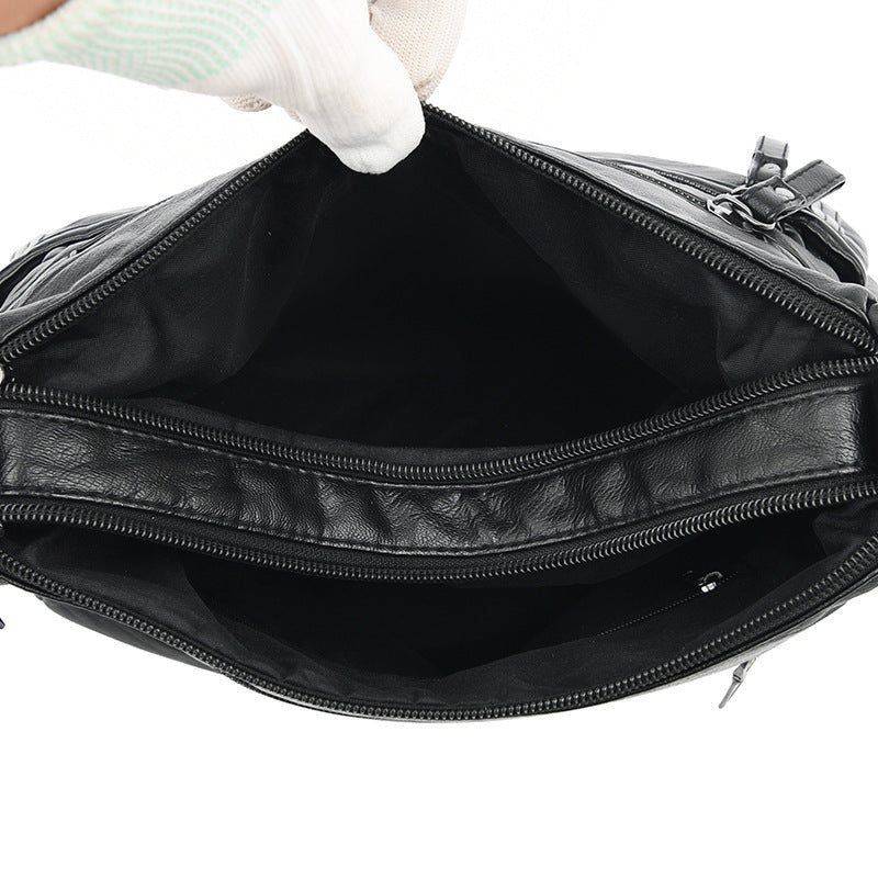 Real Washed Leather Classic Solid Color Soft Leather Versatile Casual One-shoulder Crossbody Bag