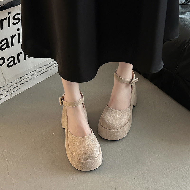 Retro Closed Toe All-match Buckle Women's Thick Heel Shoes Fashion